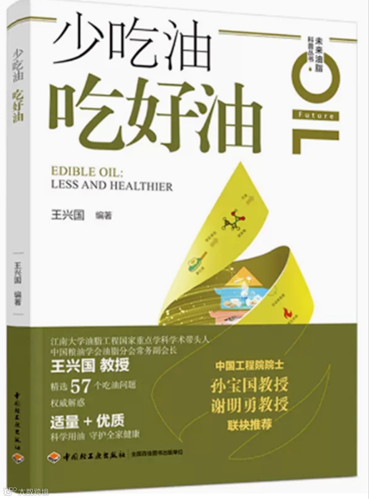 1、江南大学食品学院王兴国教授主编的《少吃油 吃好油》,中国轻工业出版社2022年12月出版。