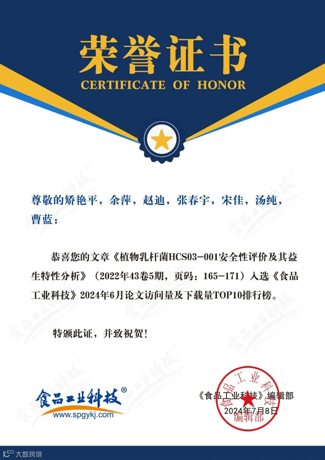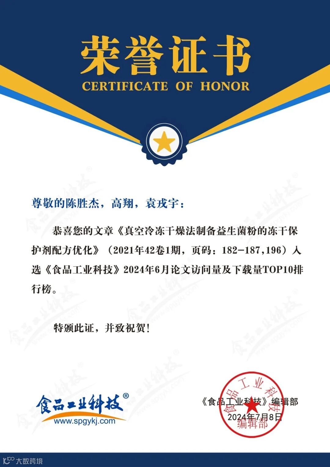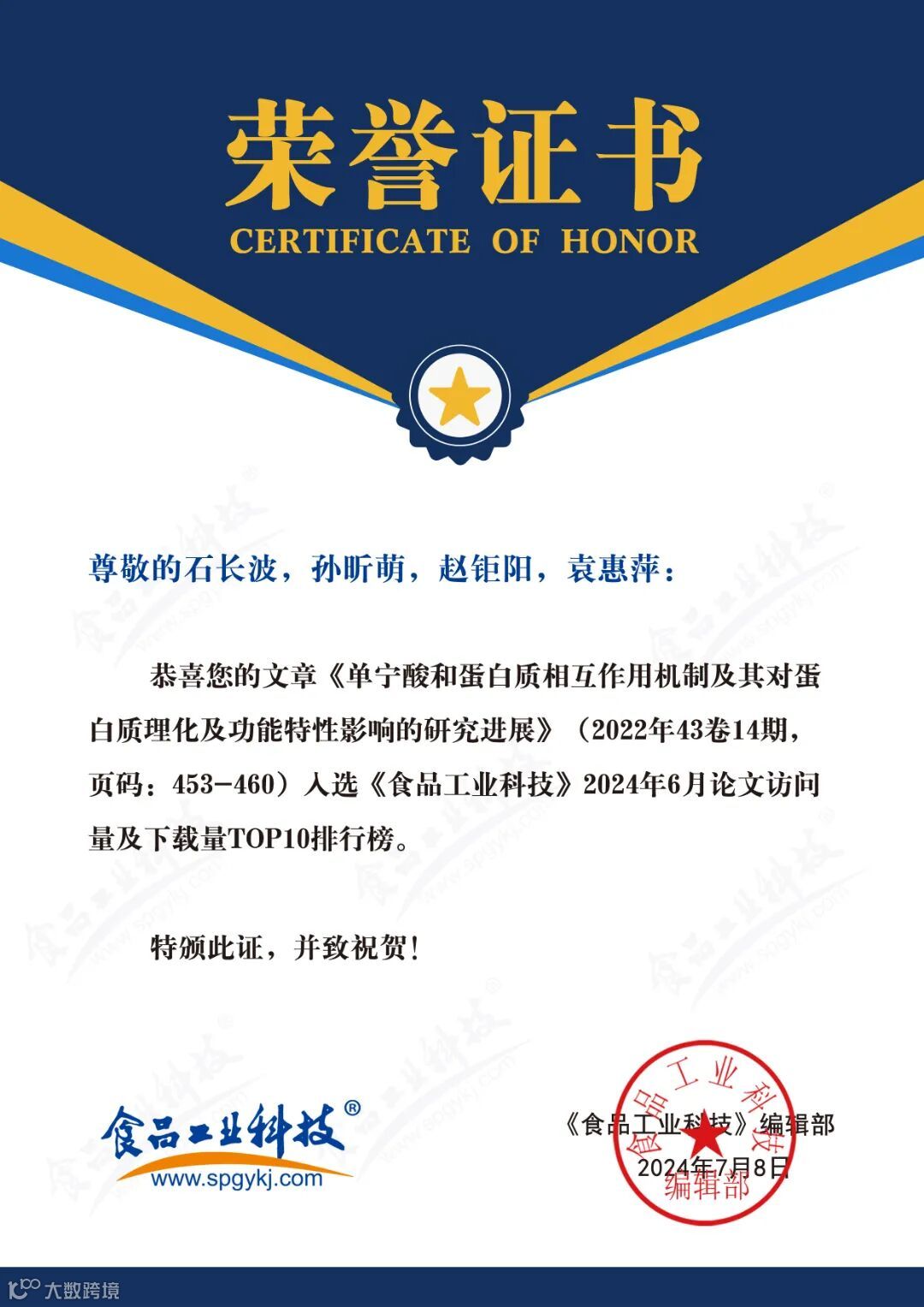 食品科学家论文汇总
