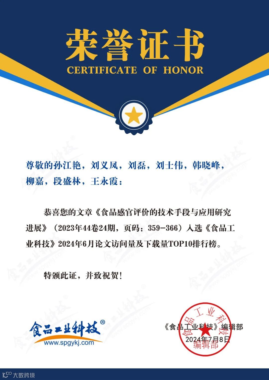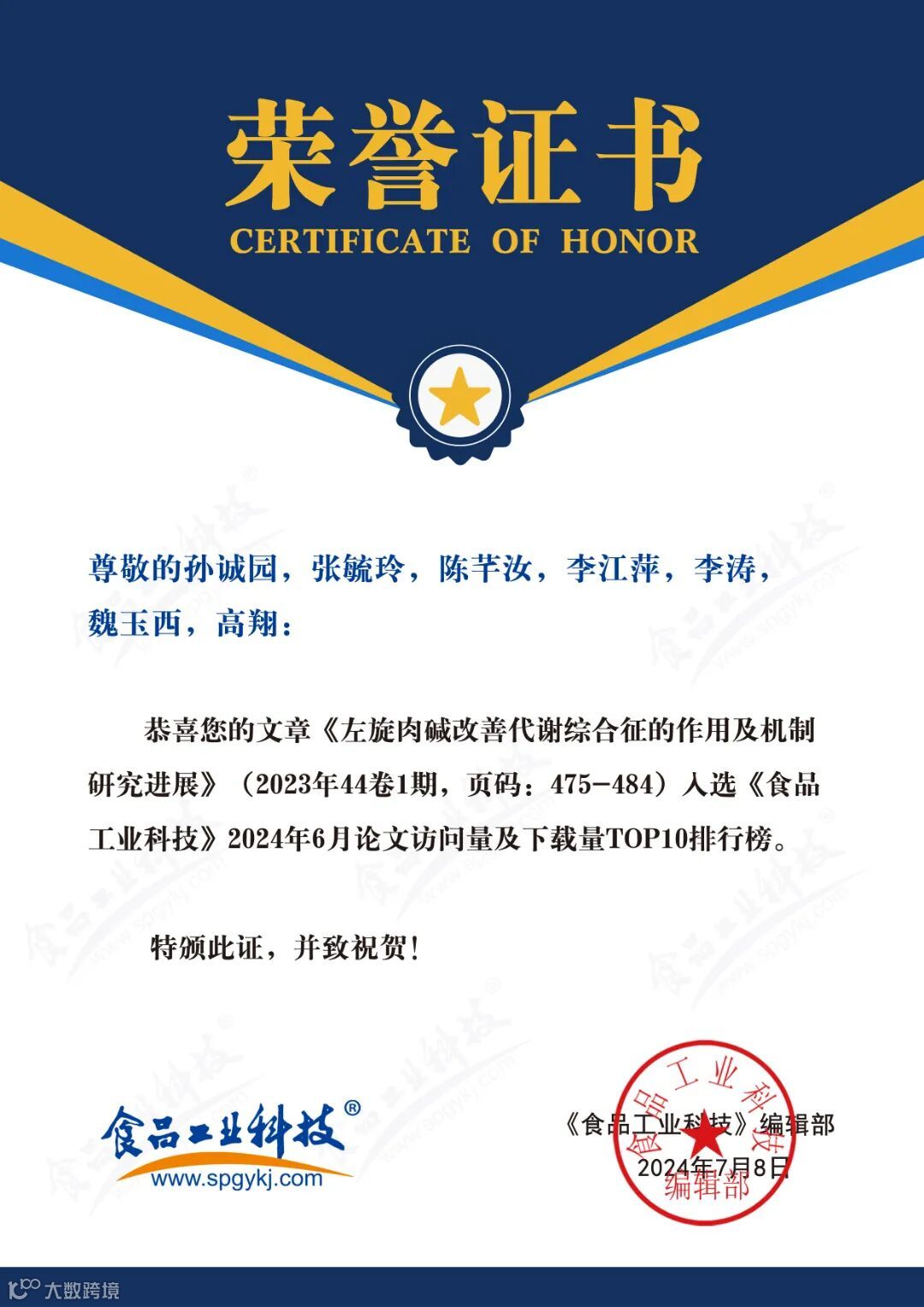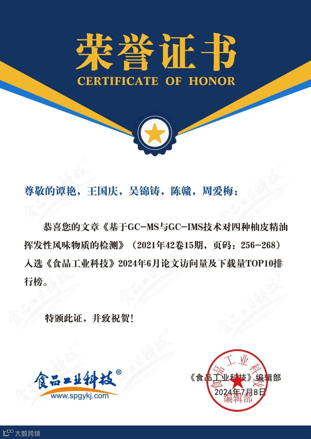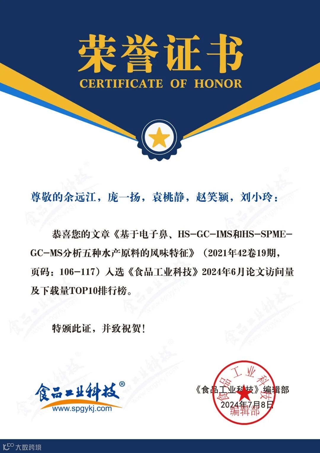 食品科学家论文汇总