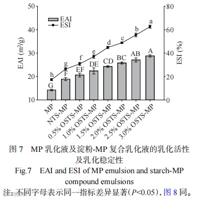 为了提高木薯淀粉的疏水性,使其作为颗粒乳化剂改善肌原纤维蛋白(myofibrillar protein,MP)的乳化特性,实验利用辛烯基琥珀酸酐(octenyl succinate anhydride,OSA)对原料木薯淀粉(native tapioca starch,NTS)进行疏水改性处理,得到不同改性水平和取代度(DS值)的疏水改性木薯淀粉(octenyl succinate tapioca starch,OSTS),并利用OSTS与MP制备复合乳化液。通过XRD、FT-IR、SEM和PLM分析了OSTS的结构变化,并测定了乳化液的乳液指数(EI值)、乳化活性(emulsifying activity index,EAI)、乳化稳定性(emulsion stability index,ESI)、Zeta-电位、粒径分布、巯基含量和界面蛋白含量。结果显示,在木薯淀粉分子中成功引入了疏水基团,疏水改性处理对木薯淀粉颗粒的晶体结构基本无影响;随淀粉改性水平和DS值的增加OSTS-MP复合乳化液的EAI和ESI呈显著增加趋势(P<0.05),3.0% OSTS-MP复合乳化液稳定性最好;淀粉与MP在复合乳化液中的相互作用对MP空间结构产生了影响,二者在乳化液滴界面存在竞争吸附作用,且改性水平和DS值越高,这种影响和作用越强。研究结果为OSTS在乳化肉糜制品中的应用提供了理论依据。