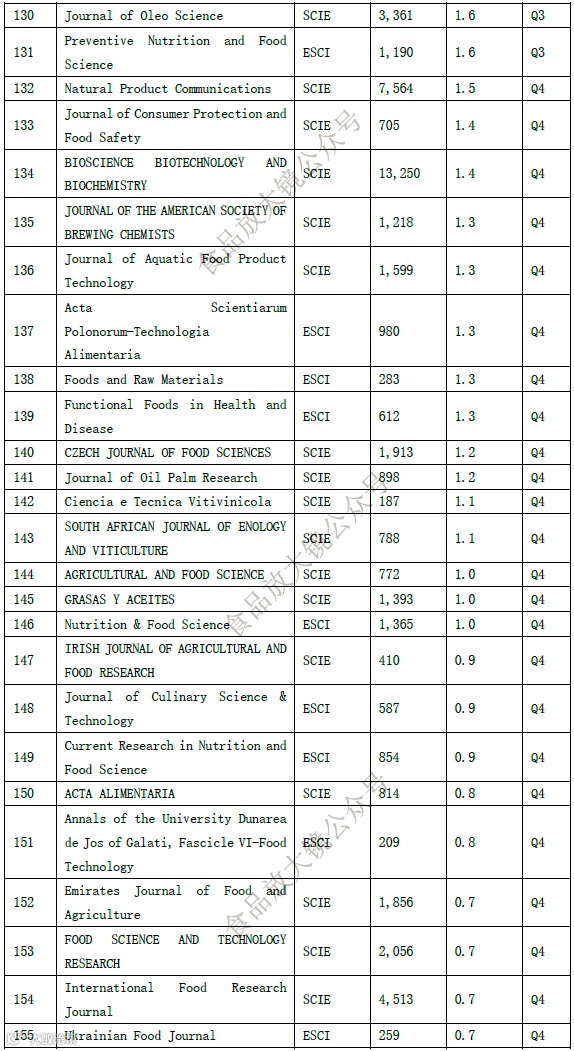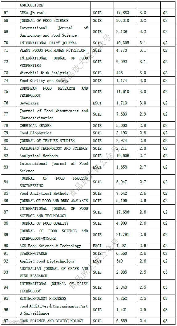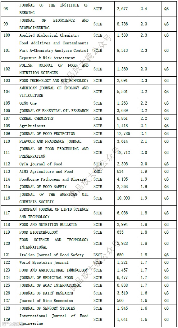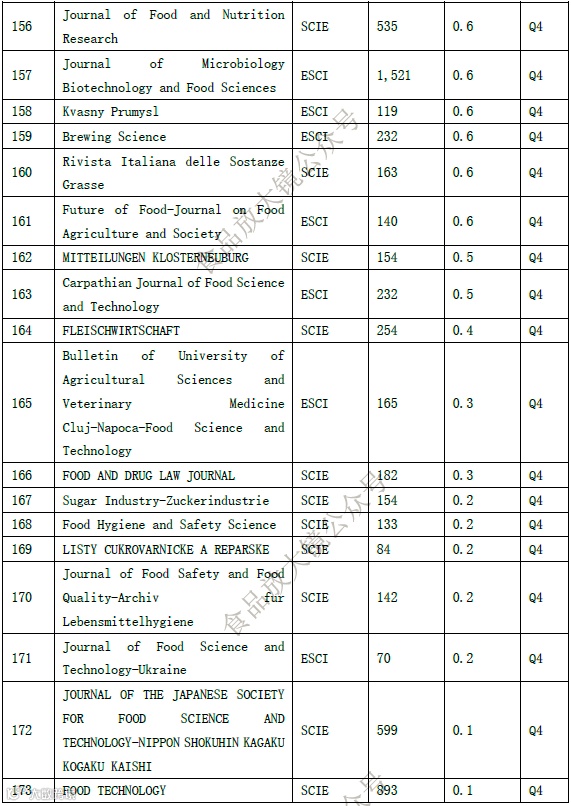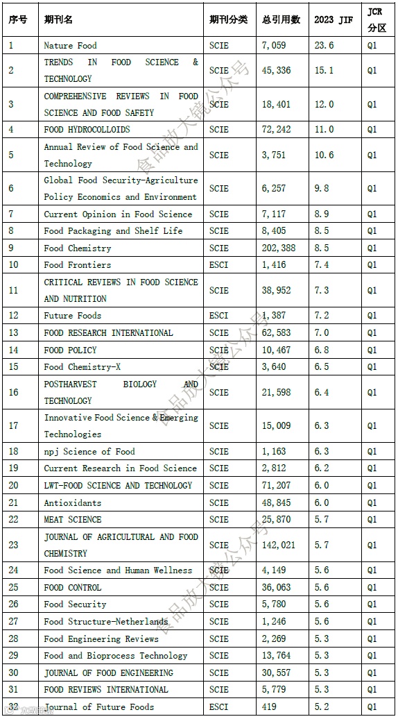 今天,JCR2024年期刊影响因子正式发布!173本食品科学与技术类期刊最新影响因子如下: