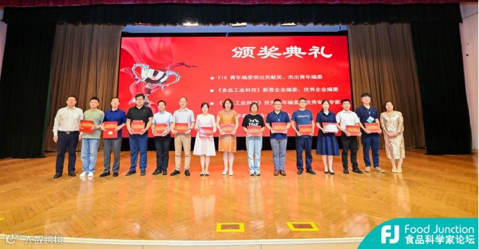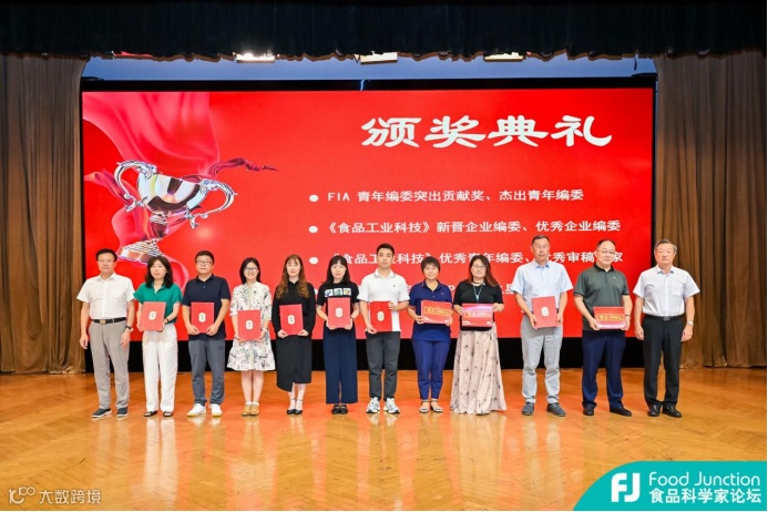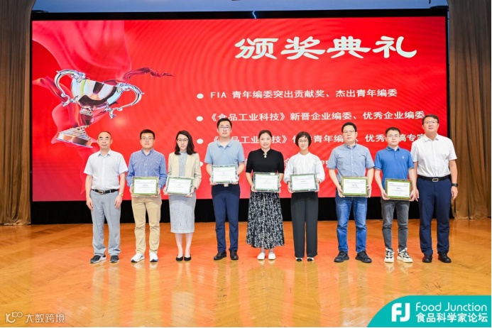 FIA两位副主编:沈阳农业大学李斌教授、浙江大学罗自生教授颁发FIA青年编委突出贡献奖和杰出青年编委证书。东北农业大学江连洲教授、《食品工业科技》张铁鹰总编颁发《食品工业科技》新晋企业编委聘书和优秀企业编委证书。河北农业大学副校长桑亚新教授、《食品工业科技》冯媛媛执行主编颁发优秀青年编委、优秀审稿专家证书。内蒙古农业大学赵丽芹教授、东北农业大学隋晓楠教授颁发食品科学家奖学金-Poster之星证书。