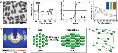 苏州大学何乐教授、张晓宏教授和多伦多大学Geoffrey A. Ozin教授合作,以核壳结构Fe3O4@SiO2纳米棒的晶体胶体阵列(CCA)为基础,研制了一种新型多磁光响应的智能光学材料。小角度X射线散射研究表明,这些纳米棒在浓缩悬浮液中形成了独特的单斜晶体。这种独特的系统结合了磁响应光子晶体(MRPCs)和磁响应液晶(MRLCs)的特性,以光子带隙和双折射的形式表现出光学各向异性,因此仅通过单一刺激即可调制结构颜色和透射率两种光学特性。施加低至50高斯的磁场,开关速率可以达到50Hz。作为概念验证,他们还展示了一种双功能显示器和防伪器件的制造,其反射颜色和透明度可以通过外部磁场动态调控,同时开关率可基于磁场方向进行调制。这种材料具有巨大的应用潜力,例如增强防伪安全性、同时具有反射和传输模式的显示和写入器件,以及可在透明和不透明状态之间快速可逆切换的智能窗口。相关工作于近日发表在《Advanced Materials》期刊上。