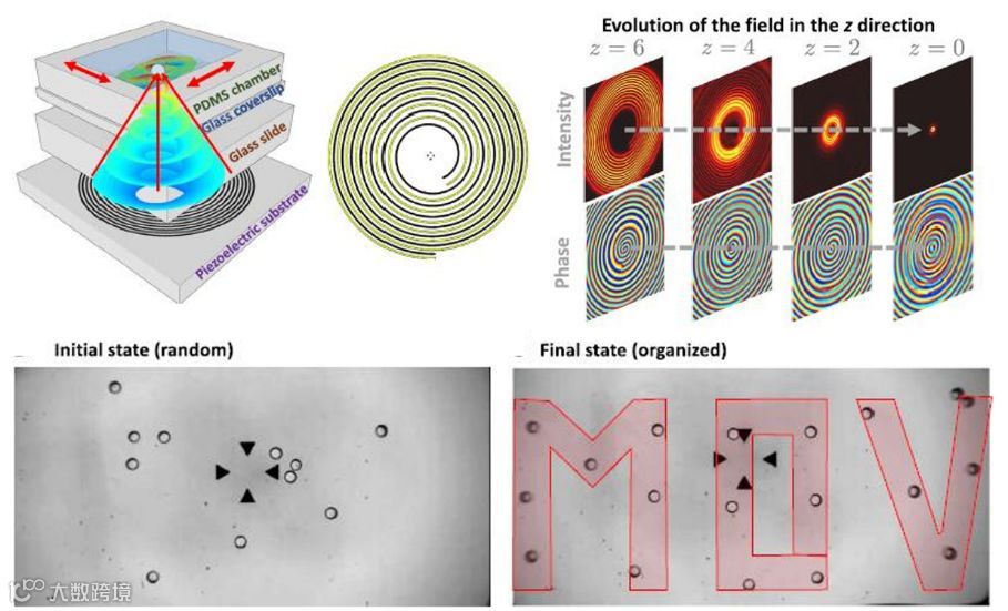 基于聚焦声学涡流的声学镊子可以实现对毫米级至亚微米级粒子,微生物和细胞进行无接触地精确地操作,并且具有前所未有的选择性和捕获力。然而,现在该技术受限于其当前系统性能、微型化和可集成等方面的影响,严重限制阻碍了它的广泛传播。近期来自的法国的里尔大学的研究人员,研发出一个平面、紧凑、成对的单电极聚焦声学镊子,通过该“镊子”可以产生聚焦声学涡流。聚焦涡旋声学镊子的实现主要依赖于平坦的压电基板上的螺旋型换能器,该换能器是获得涡旋声场的关键。论文中展示了这些镊子在标准微流体环境中具有以高度选择性抓取和取代微米物体的能力。该系统的简易性及其可在高频率的可扩展性,使其在微生物学,微机器人和显微镜方面具有很大的应用前景。该研究工作发表在《Science Advances》杂志上。