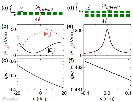 (d)-(f) 双层介质光栅的结果——其中的CR具有高强度、单向性、和单色性。