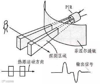 也可以这样理解,人体在检测区内活动时,一离开一个透镜单元的视场,又会立即进入另一个透镜单元的视场,(因为相邻透镜单元之间相隔很近),传感器上就出现随人体移动的盲区和可见区,导致传感器的温度变化,而输出电信号。