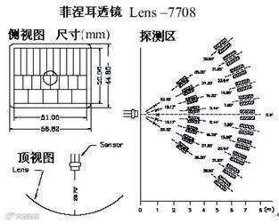 不使用菲涅尔透镜时传感器的探测半径不足2米,只有配合菲涅尔透镜使用才能发挥最大作用。配上菲涅尔透镜时传感器的探测半径可达到10米。