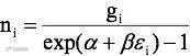 多了两项内容:1) 分子上的 gi 至少应该是2。后来确定对所有能级 gi 是一样的,对光子来说g=2;2) 分母的指数函数的指数中多了一项和粒子数对偶的 α ,此即所谓的化学势。欲使该公式同普朗克的公式等同,则要求