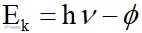 给出, Φ 是电子从金属表面逸出所需的最低能量,取决于具体的金属。这个线性公式完美地解释了光电效应的实验结果[2]。爱因斯坦1922年获诺贝尔物理奖的理由就是这个工作。