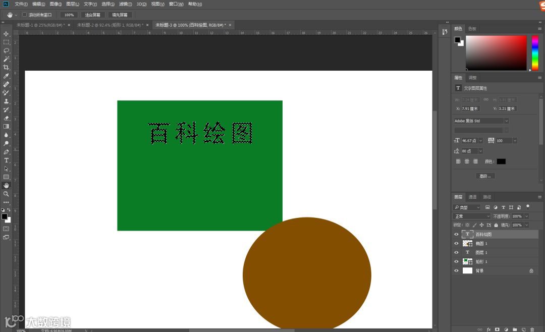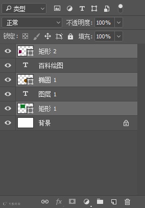 如上图所示,按住【Ctrl】后单击“百科绘图”这个图层缩览图后,能看到这个图层中的四个字就被选中了。