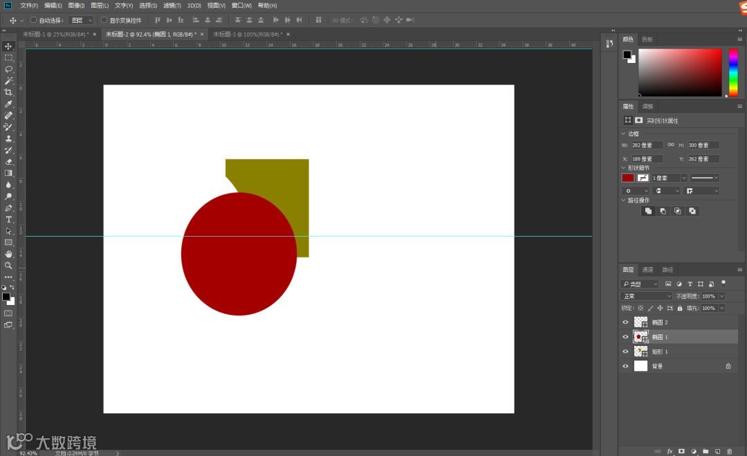 再单击一下,就建立了剪切蒙版,同时,这两个图形都可以任意移动,从而显示不同的重叠范围。
