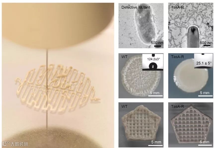 图2. 可以3D打印的基因工程改造的生物被膜。