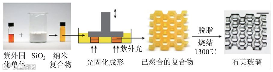 图7 SLA技术制备透明石英玻璃流程图