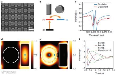 高次谐波产生(High-Harmonic Generation,HHG)首次报道于稀有气体原子中,它被认为是强场物理学的基本过程之一,也是阿秒(attosecond)光子学的核心。最近,人们在固体中发现的HHG提供了一种气体中无法实现的新型强场光子应用新方法,使我们能够直接从亚波长纳米结构中生成和控制高次谐波。全介电超表面(all-dielectricmetasurface)具有高损伤阈值和强大的驱动场增强效应,成为了控制纳米级高次谐波和其他高场过程极具吸引力的研究平台。最近,来自美国SLAC国家加速器实验室以及斯坦福大学的David A. Reis教授、HanzheLiu等人,联合斯坦福大学的ShanhuiFan教授、JelenaVučković教授等人,报道了一种硅基超表面材料中的Fano共振所导致的非微扰高次谐波增强发射(non-perturbativehigh-harmonic emission)现象,它模拟了经典的电磁感应透明现象(electromagnetically inducedtransparen-cy),谐波发射效率与未图案化的样品相比增强了两个数量级。在该研究中,增强型高次谐波是高度各向异性、依赖于激发的偏振特性,并且因其共振特征而具有激发波长的选择性。结合纳米加工技术和超快强场物理学,这里的工作为设计在高强度和短波长下工作的新型紧凑超快光子器件铺平了道路。相关研究发表在近期的《Nature Physics》上。
