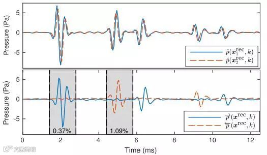 (1)由具有2kHz中心频率的Ricker小波与被动式沉浸边界条件发射产生的参考压力场分布图。