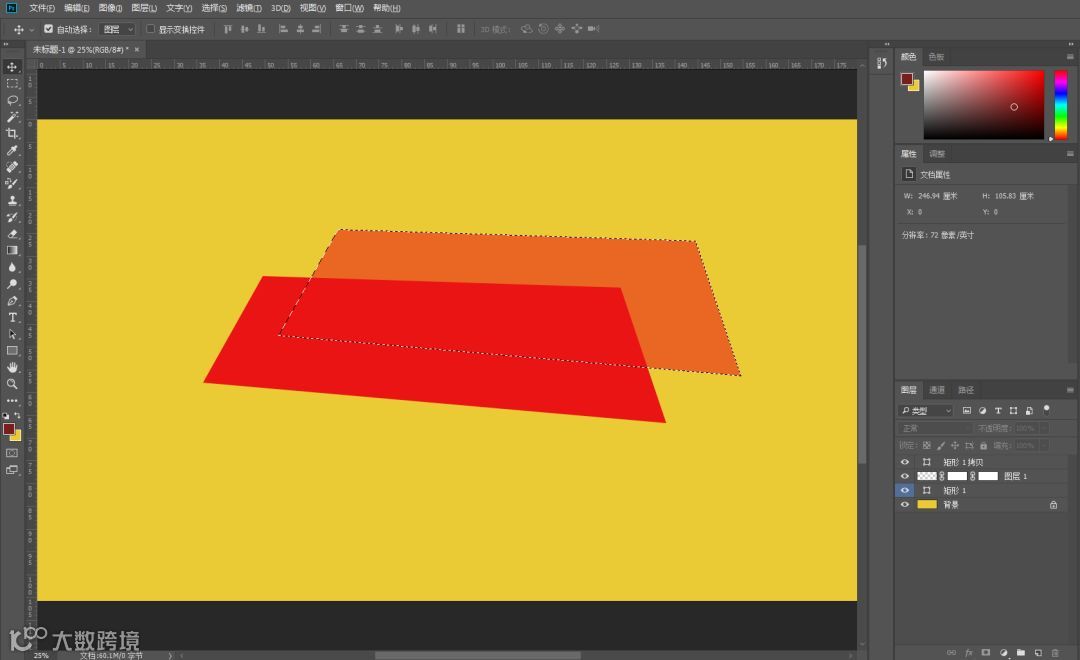 5.复位颜色:D(ps默认的前景色和背景色为黑色、白色)