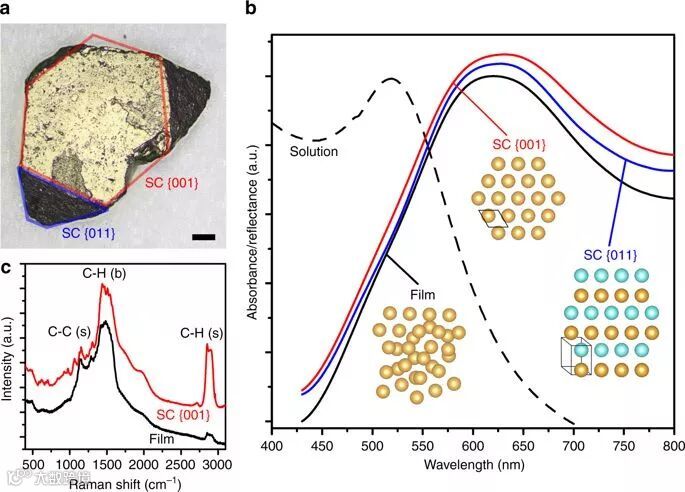 由于金、银等金属纳米粒子具有通过自组装(self-assemble)形成高度有序阵列的能力,因此可以被用来制备所谓的超晶体材料(supercrystal)——从结构上看是一类具有周期性结构的人工设计和制备的晶体材料,主要应用于可见光波段,因此在光学、电学以及传感等应用领域具有很大的发展潜力。近日,来自美国Sandia国家实验室的Hongyou Fan教授(通讯作者)课题组、美国康奈尔高能同步辐射光源实验室的Zhongwu Wang教授等人组成的研究团队,通过二元溶剂扩散(binary solvent diffusion)的方法,制备了一种3D自组装金纳米颗粒超晶体。这种超晶体材料可以进行人为可控的纳米颗粒填充,并且表现出十分出色的光学性能。该工作以“Formation of self-assembled gold nanoparticle supercrystals with facet-dependent surface plasmonic coupling”为题于2018年6月18日发表在《Nature Communications 》[1]。