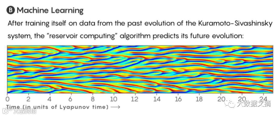 用Kuramoto-Sivashinsky系统过去的演进数据进行训练后,“储水池计算”算法预测其未来演进。