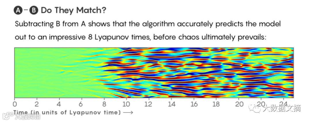 令人赞叹的是,在混沌最终占优势之前,该算法可以精确地预测出模型的8个李亚普诺夫时长时间内的演进。
