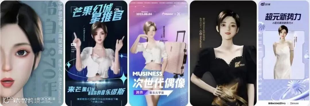 小缪Metamuse:出生在虚拟世界的音乐少女,身高168cm,甜美开朗、阳光积极、喜欢唱歌跳舞、时尚弄潮儿、对新鲜事物充满好奇心与探索欲,并且敢于大胆尝试,首支MV冲上微博热门视频「全站总榜」!是「支持正版从我做起」公益活动的形象大使,话题3000万阅读,3万+讨论,两次登上微博热搜。兼具双重身份:既是虚拟偶像,也是MUSINESS首席数字人客服官。