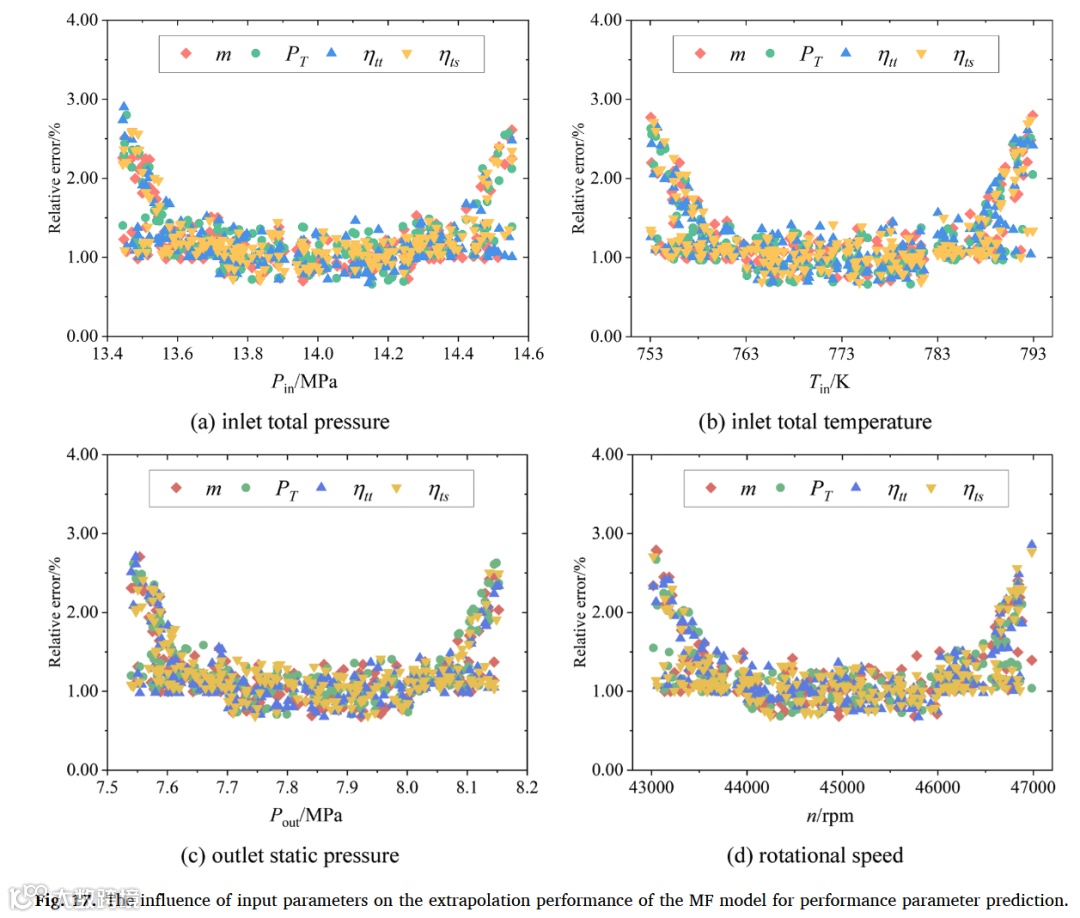 所提MF框架①物理场预测最大误差≤1.5%且FMSE降低81%;②性能参数90%样本误差<0.5%;③训练规模达60%时精度饱和(边际效应);④操作参数外推2倍仍保持鲁棒性。通过LF数据提供全局先验,显著降低HF数据需求,可扩展至航空发动机等旋转机械领域。