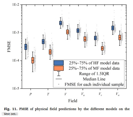 物理场:压力/温度/速度最大相对误差仅1.43%/0.41%/1.03%,场均方误差(FMSE)比单保真模型降低81%; -
