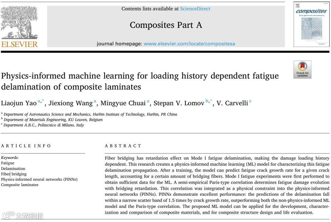 • 英文:Physics-informed machine learning for loading history dependent fatigue delamination of composite laminates -