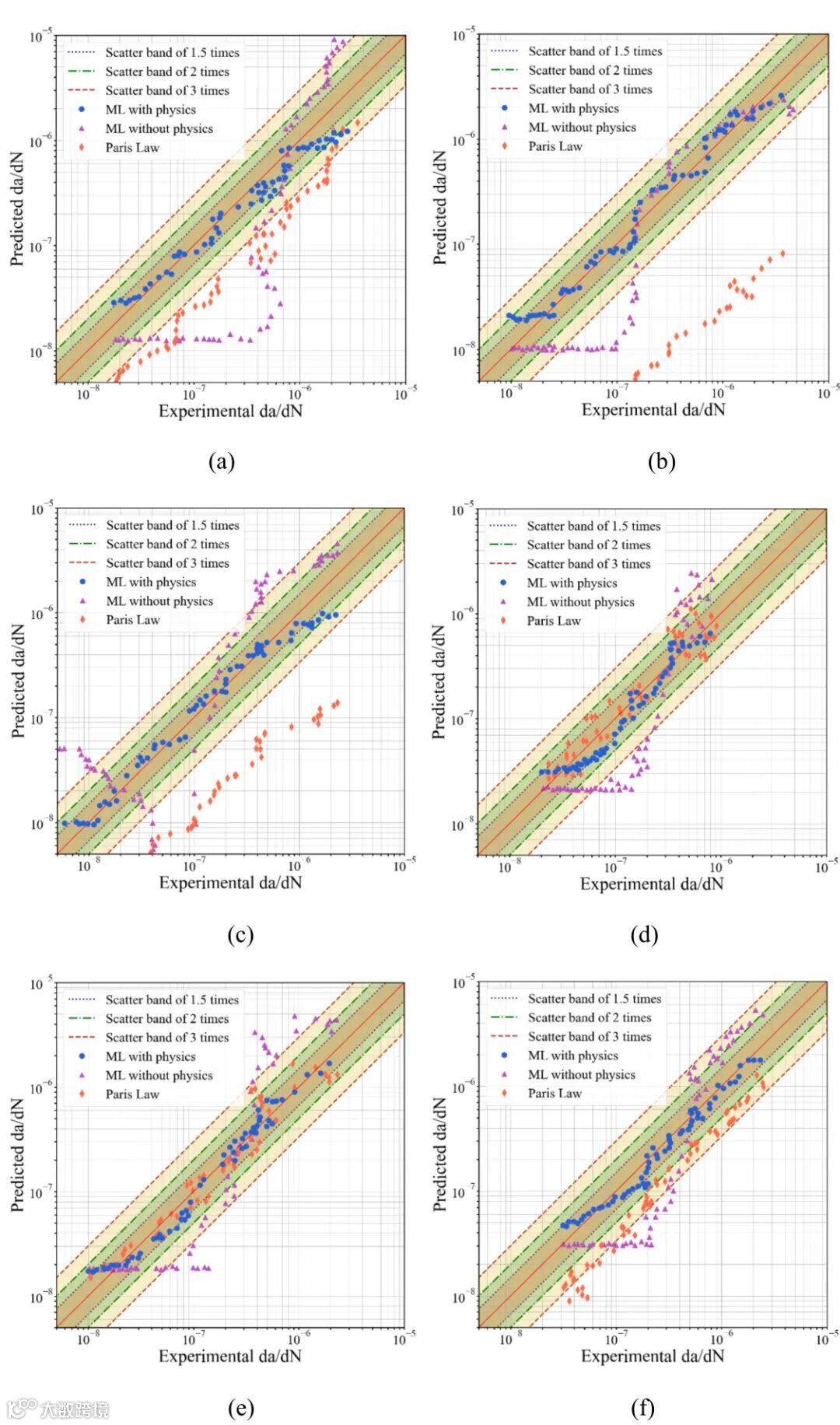 3. 预测精度:模型预测结果在1.5倍散布带内,显著优于传统ANN和Paris型关联式