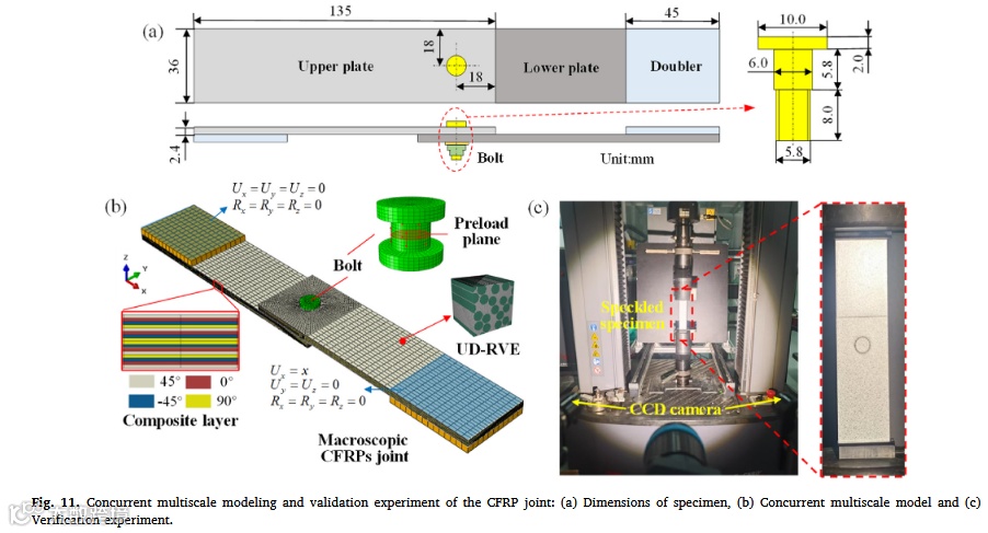 • 痛点描述:螺栓孔破坏纤维连续性引发局部应力集中,导致接头过早失效。传统序列多尺度方法无法同步捕捉宏微观损伤演化,而现有并发方法(如FE²)因微观计算耗时无法应用于复杂接头结构。 -