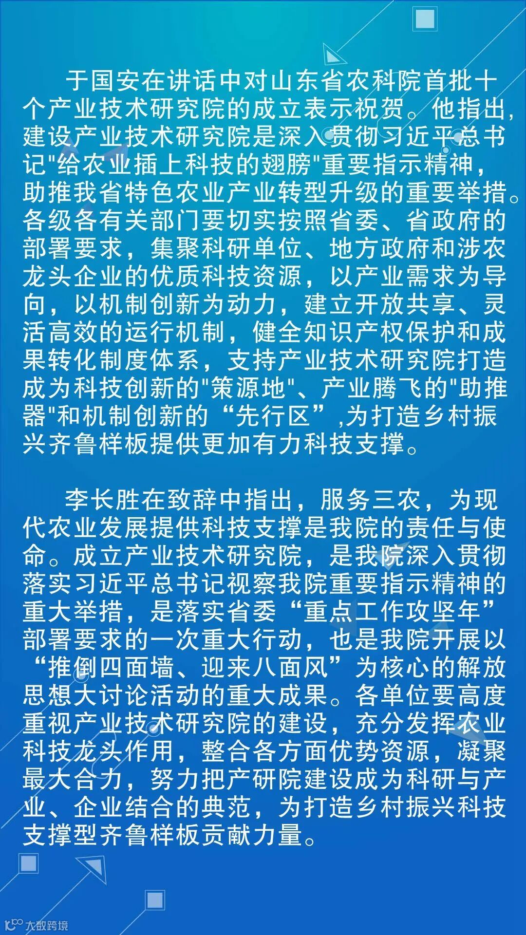 山东省农业科学院首批十个产业技术研究院在济南成立!