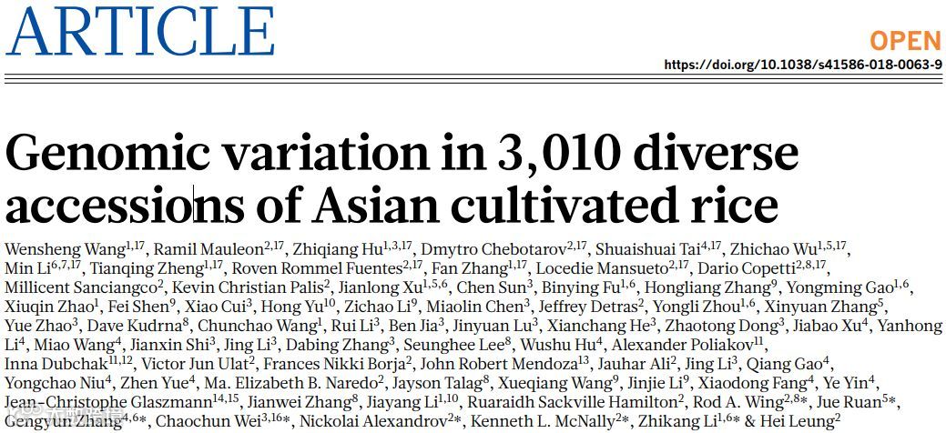 △这项研究由中外诸多研究团队历经7年完成,项目参与者众多。其中王文生、Ramil Mauleon、胡智强、Dmytro Chebotarov、太帅帅、吴志超、黎珉、郑天清Roven Rommel Fuentes、张帆、Locedie Mansueto和Dario Copetti为该论文的共同第一作者。黎志康、Kenneth L. McNally、Nickolai Alexandrov、韦朝春、张耕耘、阮珏、Rod A. Wing为共同通讯作者。