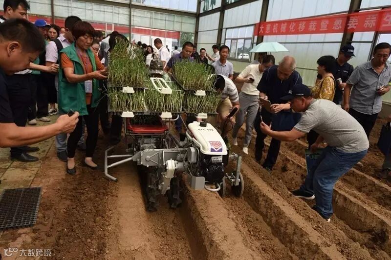 通过会议,专家们试图向外界展示科技在改变传统农业操作方式方面的作为——一台台被带至现场的农机“神器”,精整地机、开沟起垄机、大葱移栽机、大蒜播种机、大葱收获机、大蒜收获机、种子丸粒化、穴盘育苗机、叶菜收获机、大蒜分选机、蒜种分瓣机、黑蒜加工机……让现场的种植大户们大饱眼福。