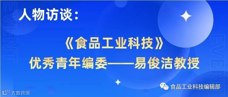 本期人物专访,《食品工业科技》十分荣幸地邀请到了《食品工业科技》优秀青年编委——易俊洁教授。此次访谈中,易俊洁教授与我们分享了其研究领域的最新动态以及个人见解,并对其团队进行了介绍,最后对《食品工业科技》及中文期刊的发展提出了建议。