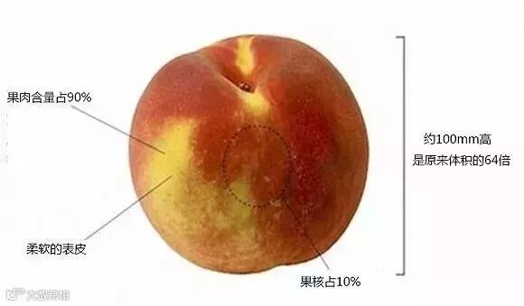 经过了几千年的选种培育,现在的桃子比原始的形态大了64倍,果汁含量多了27%,甜度则增加了4%。