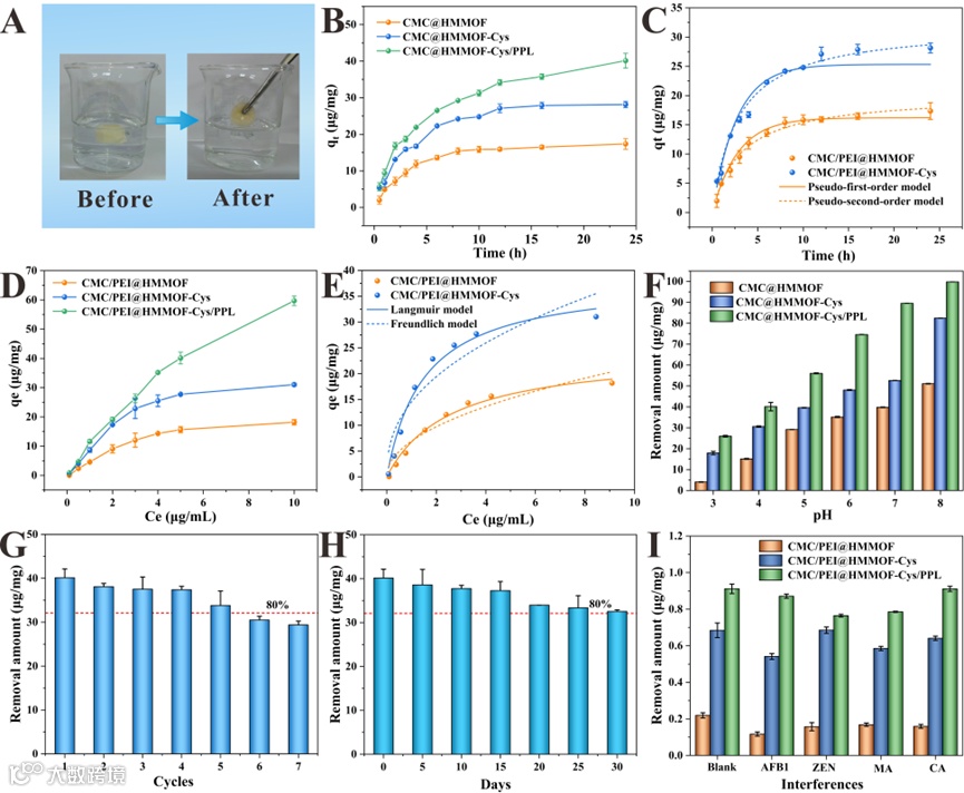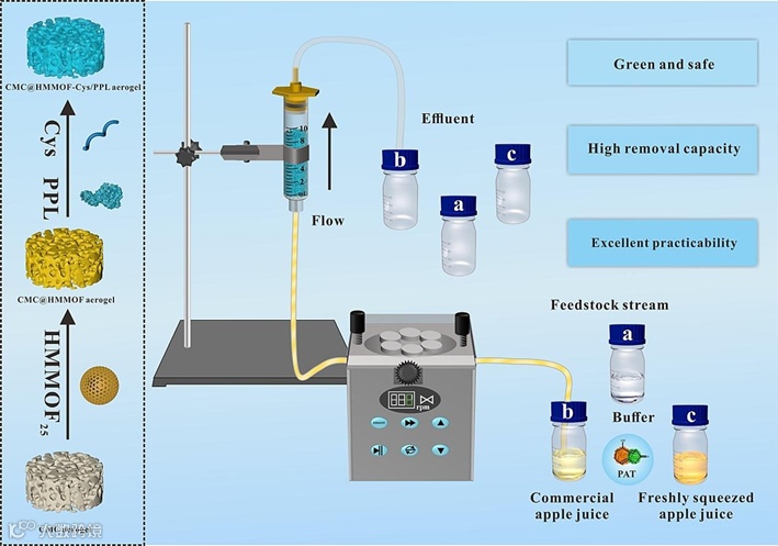 CMC@HMMOF-Cys/PPL气凝胶对PAT表现出高的吸附能力(38.41 μg/mg);