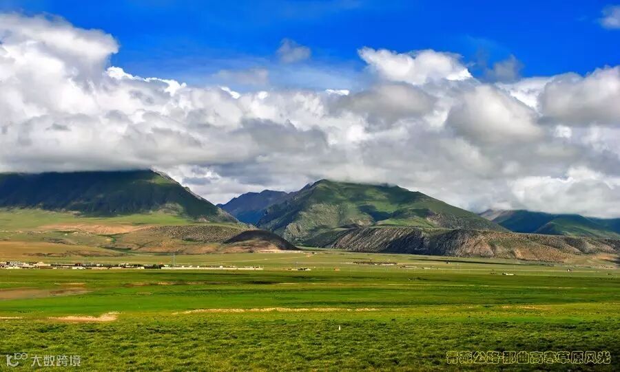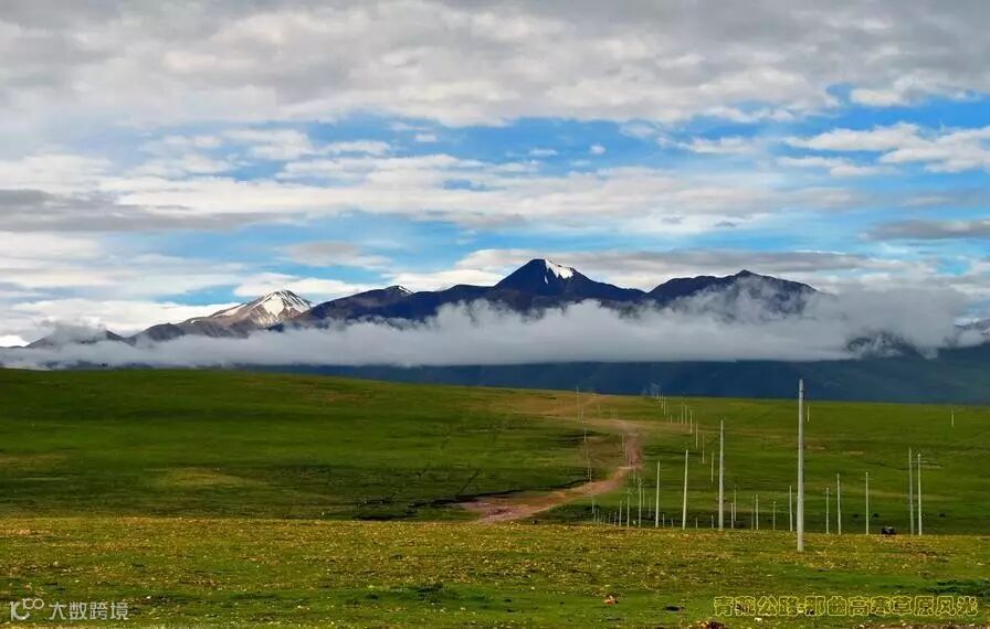 那曲高寒草原最美丽的景色是在夏季雨后初晴时刻。此时,清爽的绿色草原与湛蓝的天空交会于遥远的天际,低垂的白云在清风吹拂下擦过草原,轻轻抚摸着黑白相间的牛群和羊群。