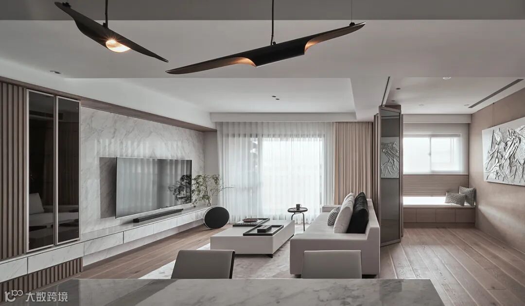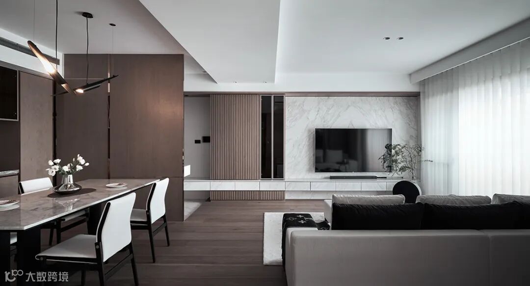 翻转木质调基底,挹注强劲力度与风范,再佐上浅白色系家具,强势定调石材比重,在一片温朴底色里,拿捏不失衡的别致品味。