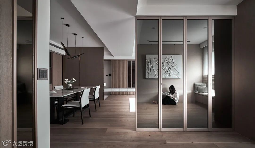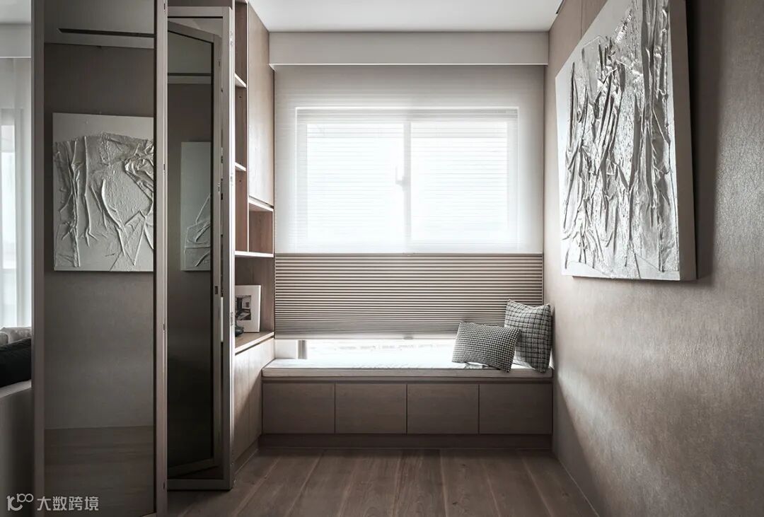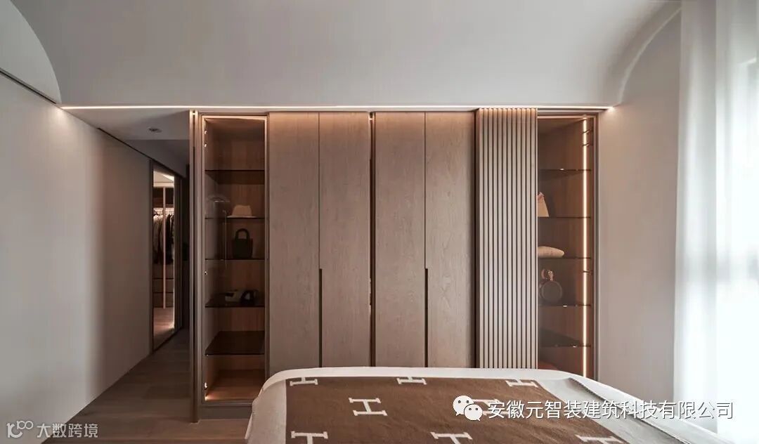 当视觉流转在穿透、半透视与封闭之间,随着衣柜丰富立面表现,使之跳脱纯粹机能定义,赋予一面居家端景。