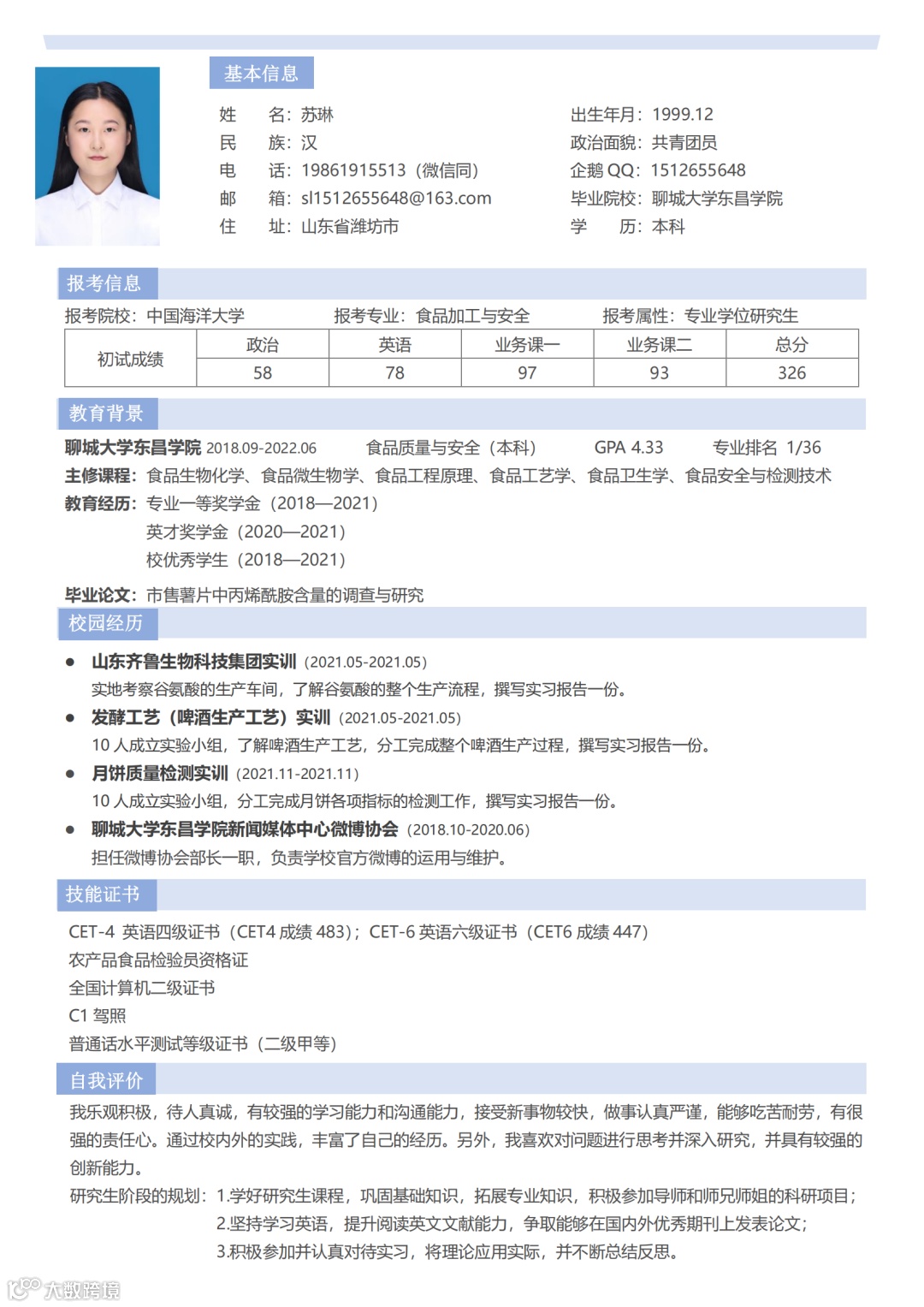 2023年毕业调剂学生汇总@优质考生简历版