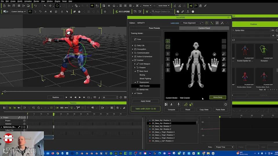 似乎这还不够,Reallusion还发布了AccuPOSE,这是一种人工智能训练的姿势模型,使姿势更容易、更自然。幸运的是,我获得了“Wall Crawler”模型,该模型附带了AccuPOSE Infinity扩展,与“Wall Crawler”运动包完美配合。