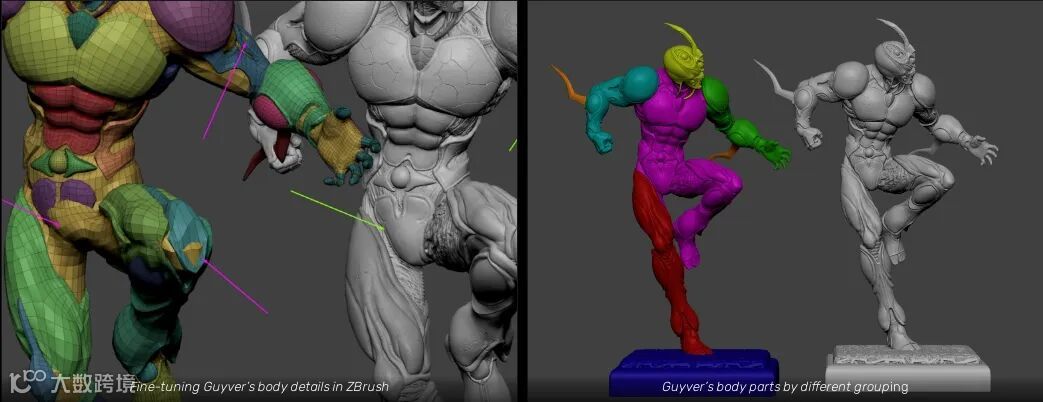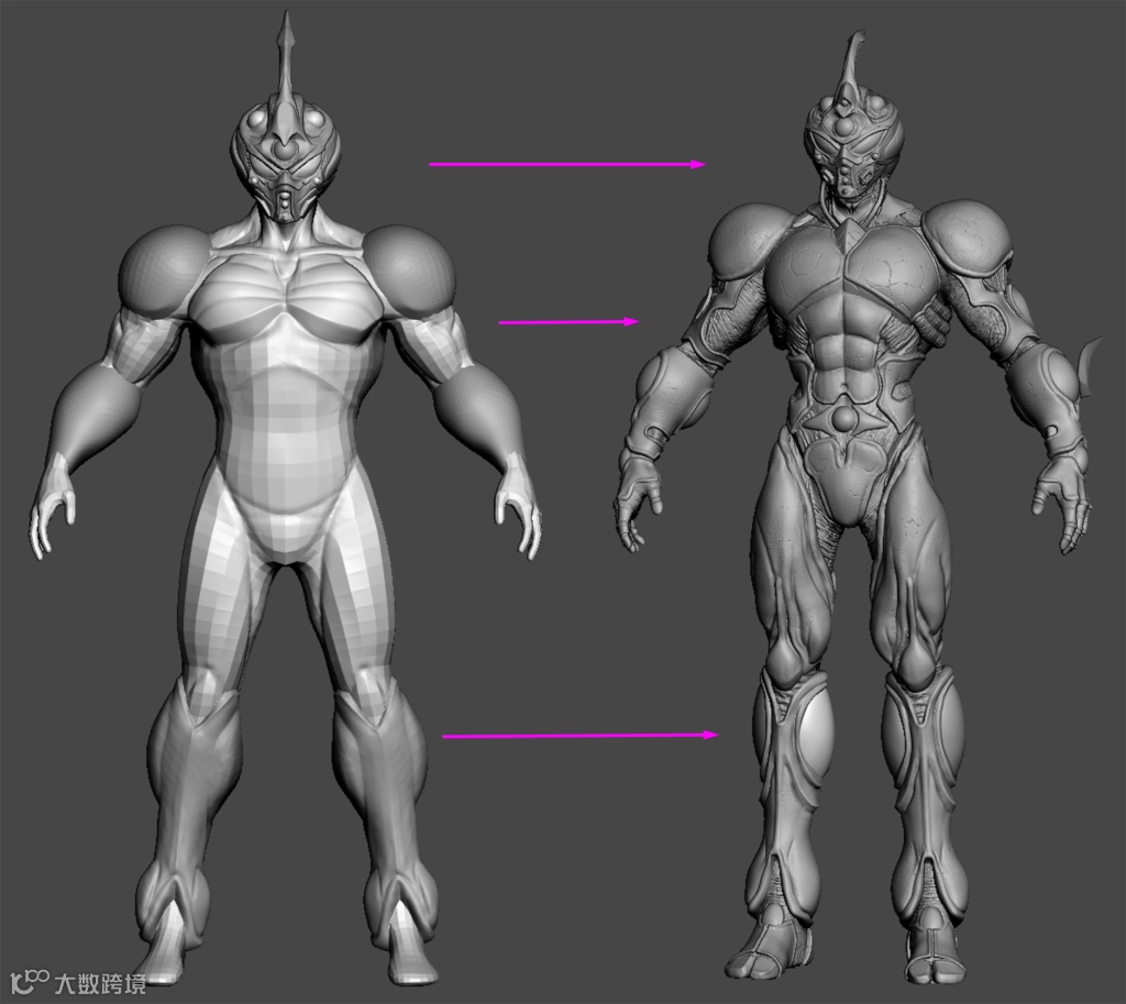 在ZBrush增加强殖装甲的细节。多边形数量不应超过30万个四边形(60万个三角形)