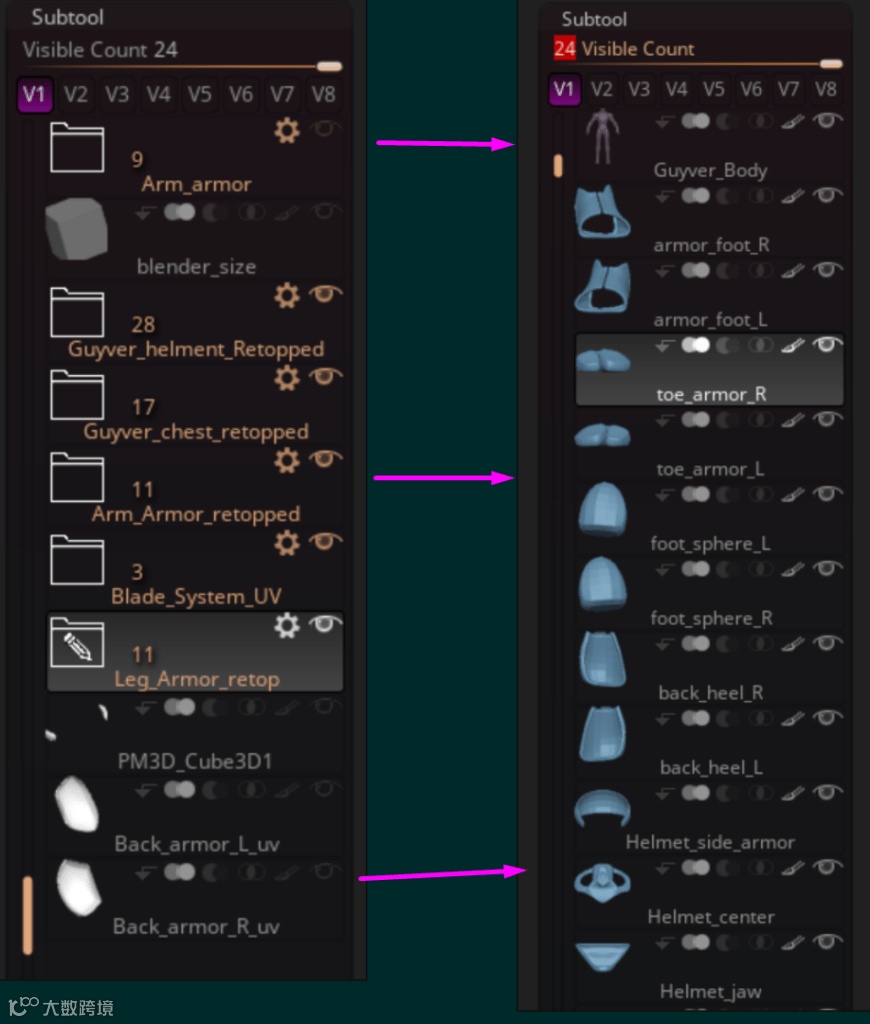 在开始装配之前,我通过做以下事情来确保我的ZBrush场景是整洁的: