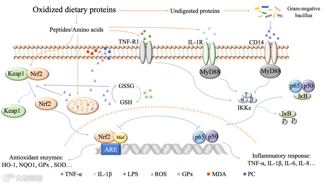 图2. 膳食蛋白质氧化影响机体健康的相关信号通路