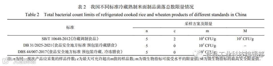 2 我国冷藏熟制米面制品标准中微生物指标现状