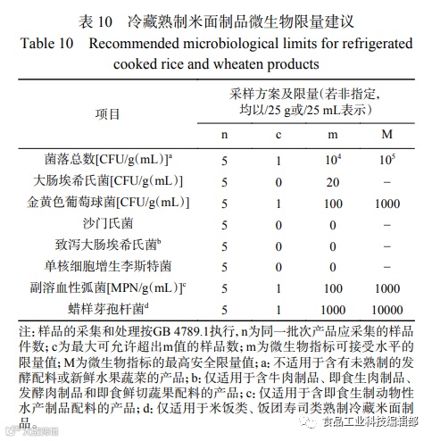 充分考虑行业总体技术水平和当前市场情况的基础上,以充分保障食品安全为原则,建议冷藏熟制米面制品标准制定中微生物限量如表10所示。