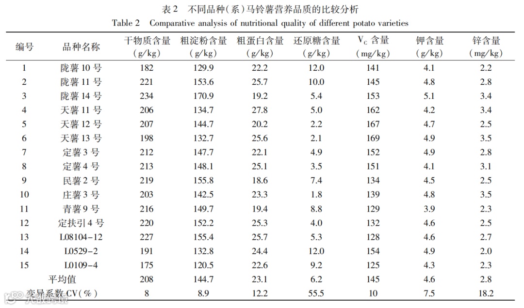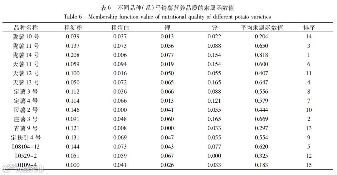 主成分分析和隶属函数法综合评价15种(系)马铃薯的营养品质