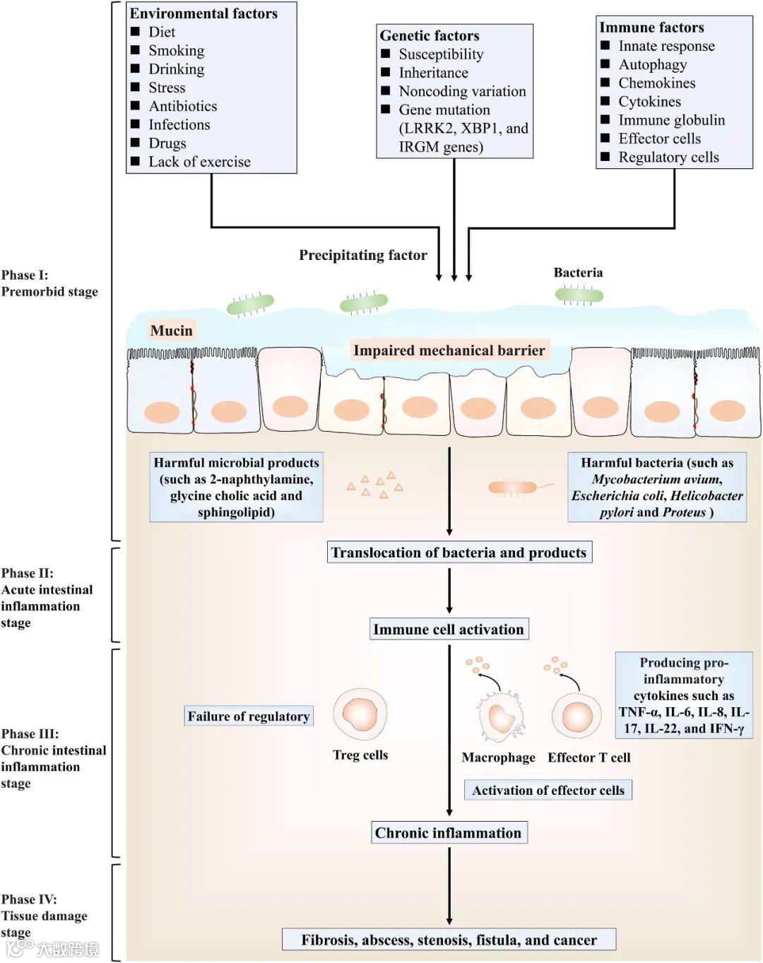 图2. IBD潜在发病机制示意图。