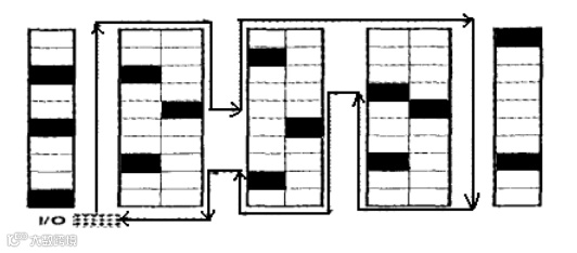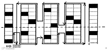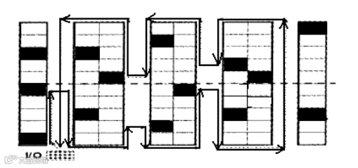 中点回转策略是从拣货通道的中点处将分拣区域分成前后两部分拣货人员从通道的一端进入,拣取完货物后回转折返,最远处就是该通道中点,当拣货人员离开拣货区域的前半部时,拣货员要从最右边的通道穿越进入通道后半部分,以同样方法开始后半部分的拣货。当后半部的拣货完成后,穿越最左边的通道回到出人口。这里不但采用回转方法而且在进入和退出后半部通道时采取了穿越策略。