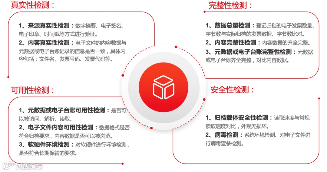 除此之外,特别明确了电子发票的四性检测的检测方法,以满足保管的合规性,确保其可以作为有效的电子凭证安全的长期使用。