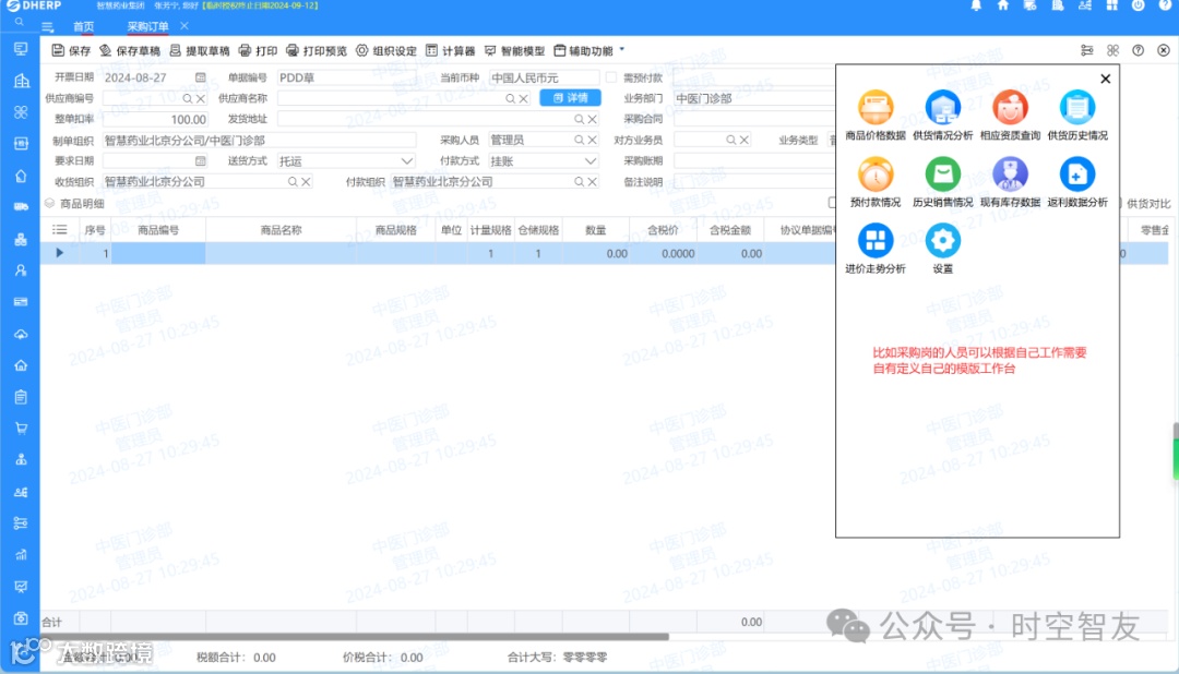 为进一步优化用户操作体验,提升工作效率及准确度,帮助用户更轻松、便捷的使用DHERP系统,DHERP面向系统最终使用操作者推出自定义工作台。根据个人的工作习惯和需求,轻松定制专属的工作界面。无论您需要快速查看待办事项,还是实时追踪业务进度,或是全面掌握各项数据,只需简单操作,即可轻松实现。